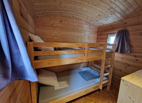 Chaque roulotte dispose d’une chambre parentale avec lit double et d’une chambre enfants avec 4 lits simples superposés, parfaite pour les enfants comme pour les ados qui apprécient d’avoir leur propre espace. Cette configuration avec chambre indépendante permet à chacun de vivre le séjour à son rythme, entre moments en famille et instants plus tranquilles.