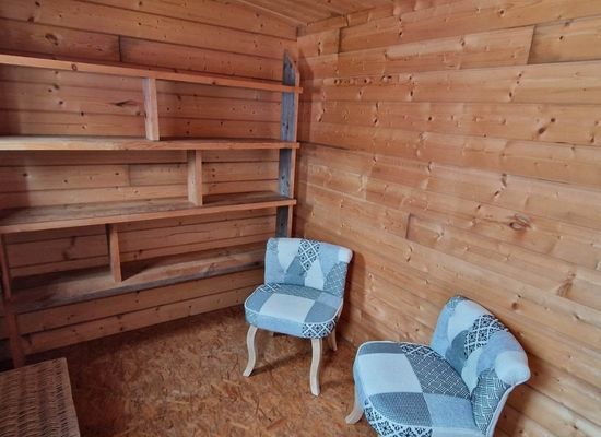 À l’intérieur, l’atmosphère évoque une cabane de Robinson Crusoé, simple et dépaysante, idéale pour se retrouver et décrocher du quotidien.