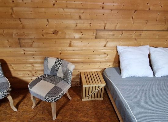 Pensée pour un séjour à deux, elle offre un espace cosy avec un lit double, une kitchenette et un coin repas, dans une ambiance chaleureuse où le bois est à l’honneur.